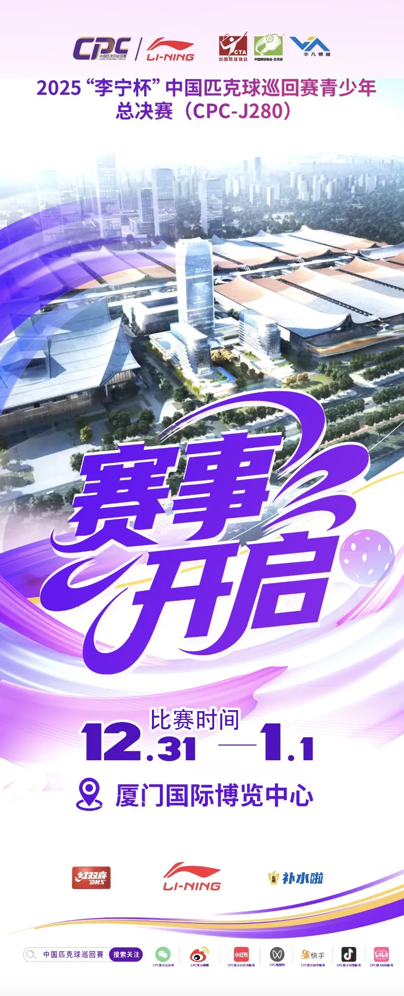 2025年12月31日-2026年1月1日,国内最高等级的青少年匹克球赛事—— 2025“李宁杯”中国匹克球巡回赛青少年总决赛(CPC-J280),将在厦门国际博览中心点燃战火!