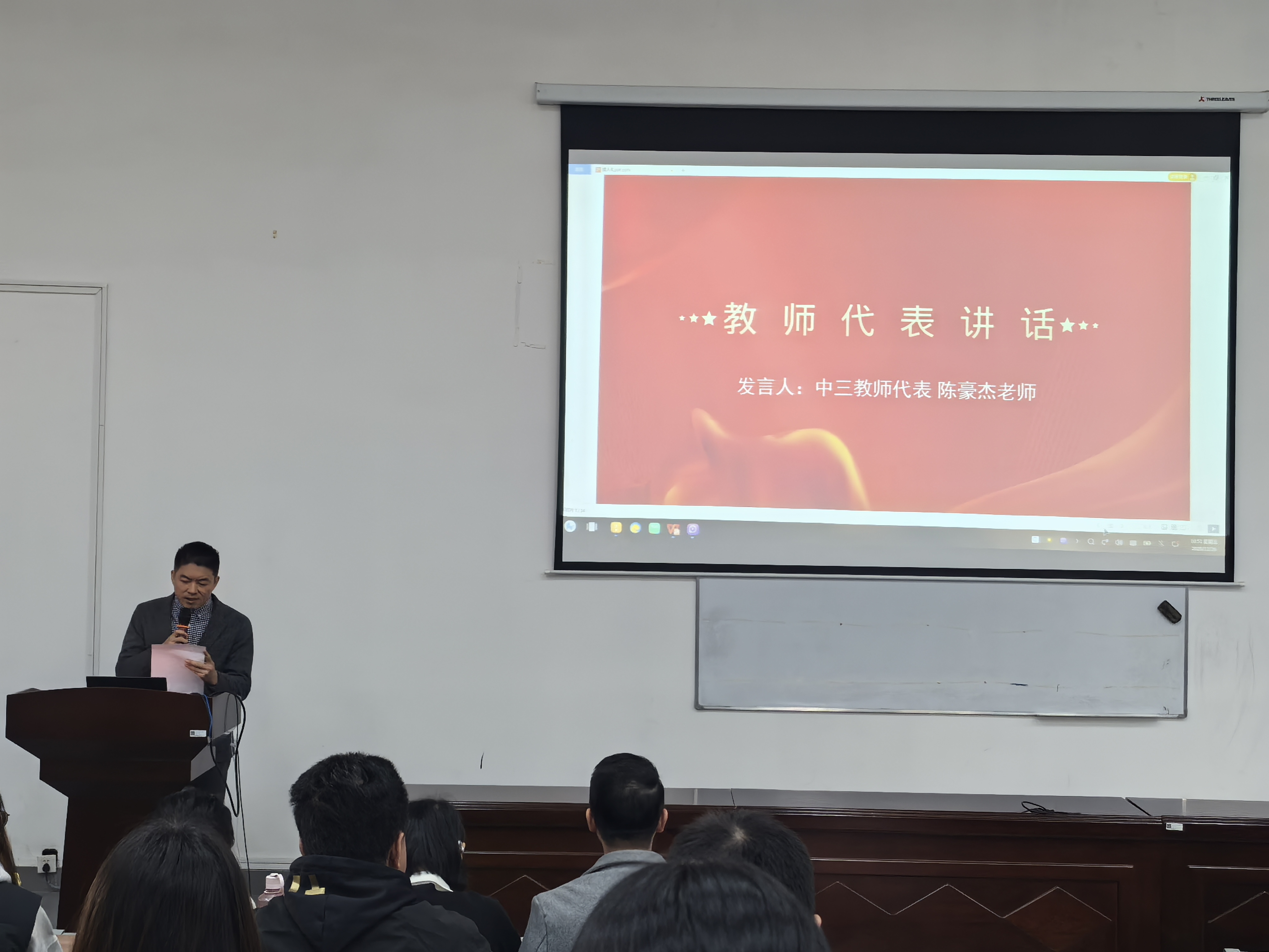 中三团支部苏铮芮同学代表全体学生发言:“感谢老师们,是你们用智慧和耐心引领我们在知识的海洋中遨游,教会我们如何思考和面对。感谢同学,是你们的陪伴与鼓励,让我们的青春充满了欢笑和温暖,让我们在困难的时刻从不孤单。”