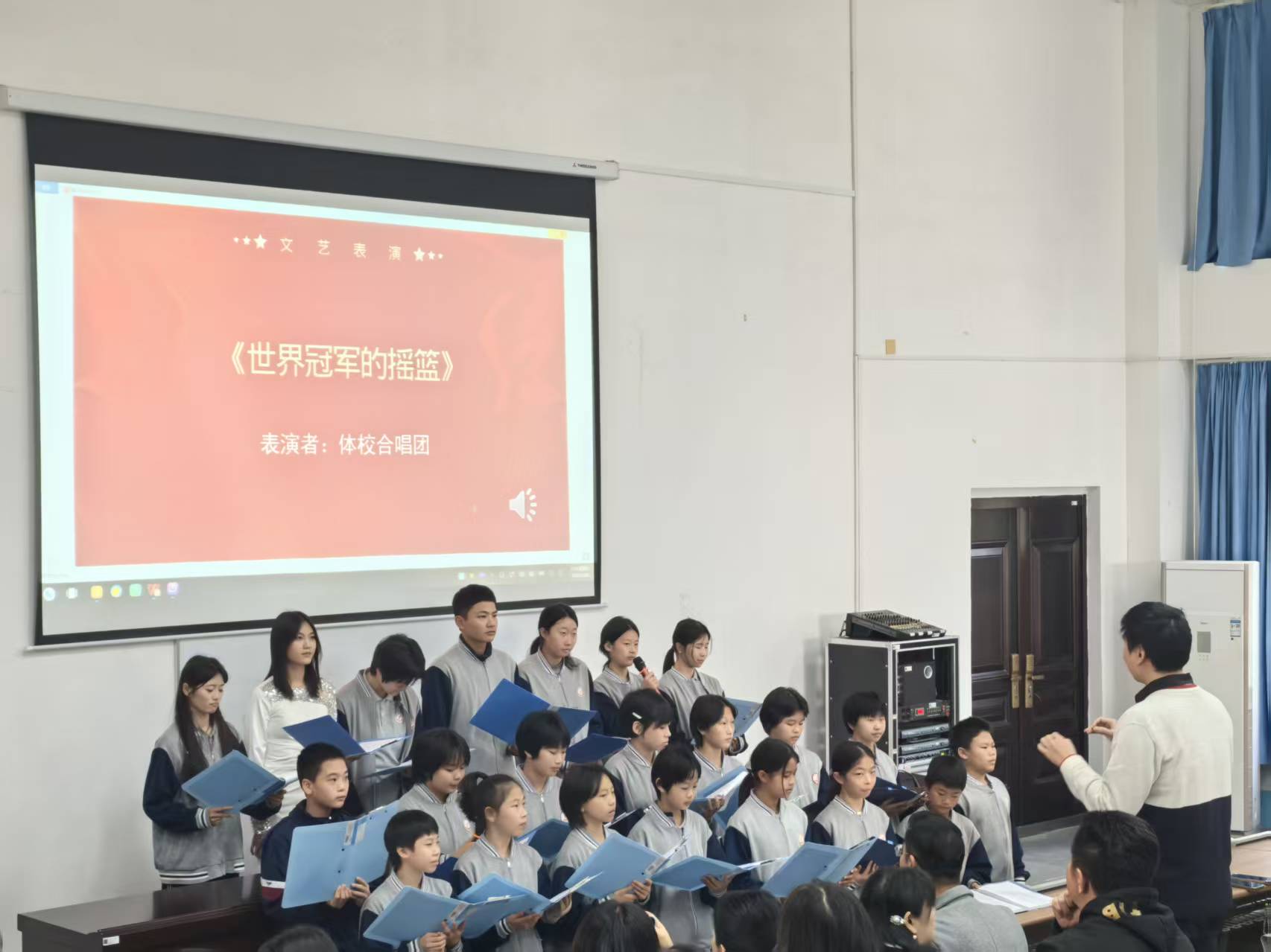 体校合唱团随后登场,歌声将现场气氛推向高潮。《凤凰花开的路口》悠扬婉转,诉说着离别与成长;校歌《世界冠军的摇篮》激昂奋进,唱出了体校人的自豪与担当。