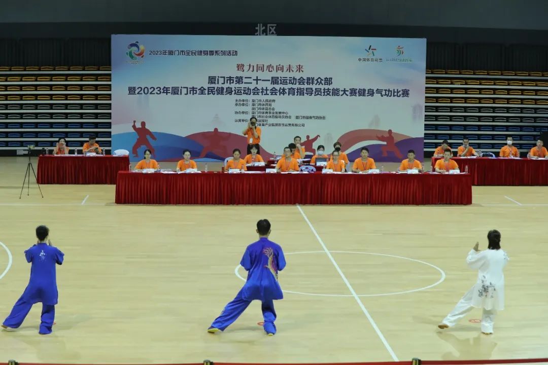 6月18日,全民健身运动会社会体育指导员技能大赛健身气功比赛在市体育中心综合健身馆比赛馆落下帷幕。起承转合间散发传统文化气息,一招一式中彰显刚柔相济之美。近200名健身气功选手云集全民健身运动会赛场参加易筋经、八段锦、马王堆导引术等5种功法的个人项目角逐。厦门大学体育教学部武术教研室主任、副教授李仁松是本次健身气功比赛裁判长,他表示,今年市体育局继续将健身气功纳入市全民健身运动会标杆赛,进一步扩大了项目影响力,吸引了更多学生报名参与,让越来越多厦门市的高校学生喜欢上了这项运动。