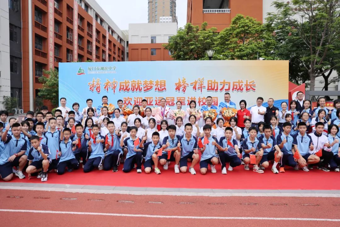 在刚结束不久的杭州亚运会中,厦门健儿们奋勇拼搏取得了7金1银1铜的骄人成绩,创下厦门征战亚运会最佳战绩。10月15日,在鲜花与欢呼声中,亚运会冠军葛曼棋、虞琳敏、林文君、陈梓桓走进葛曼棋的母校湖滨中学。冠军们积极传递拼搏向上的体育精神,让大家近距离感受到了冠军风采,活动满满仪式感、满满正能量。活动开展了座谈会,会上冠军们分享了训赛的情况以及下一步的计划,与学子们热情互动有问必答,并寄语广大学子,激励大家逐梦青春。作为学姐,葛曼棋不仅在座谈会上与学弟学妹们分享心得,还在田径场上指导他们比赛技巧,一对一仔细讲解、分析不足,令在场的学生们受益匪浅。座谈会后,冠军们热情地为师生们签名、与师生们合影,校园宛如大型“追星现场”!